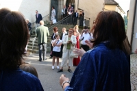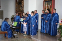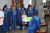 Der erste Auftritt mit Chorleiter-Enkel Noah. Der verbringt den Gottesdienst aber schlafend im Kinderwagen bei einem Spaziergang durch Horb.