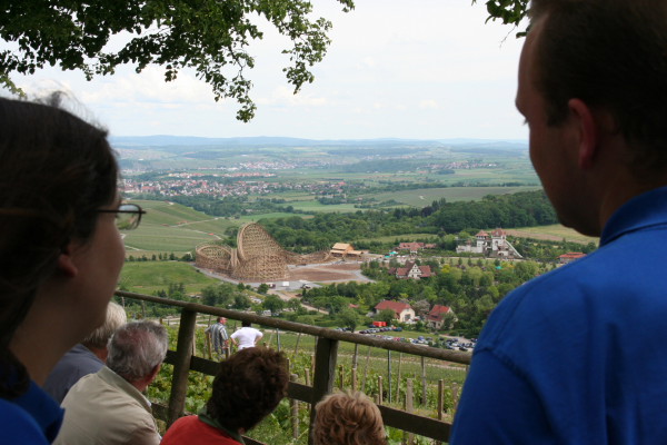 Hoch über Tripsdrill auf dem Michaelsberg sang das Ensemble unterstützt von Robinson-Trommlern drei Stunden im Zelt zum Weinfest.