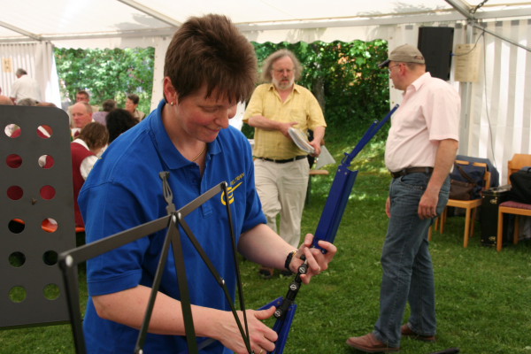 Hoch über Tripsdrill auf dem Michaelsberg sang das Ensemble unterstützt von Robinson-Trommlern drei Stunden im Zelt zum Weinfest.