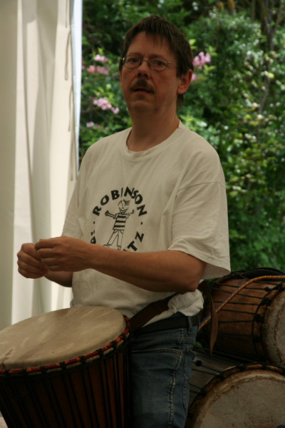Hoch über Tripsdrill auf dem Michaelsberg sang das Ensemble unterstützt von Robinson-Trommlern drei Stunden im Zelt zum Weinfest.