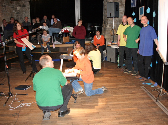 Zwischen den Stücken wurde die Geschichte gemeinsam mit dem Publikum durch Rätselfragen und Texte erarbeitet.