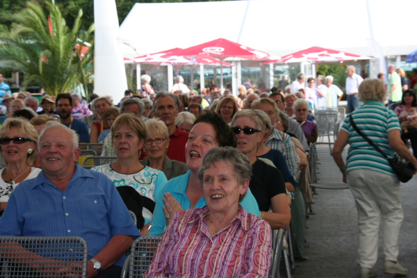 Am letzten Nachmittag der Gartenschau in Horb hatten wir einen Auftritt im Hauptzelt der Gartenschau. Zuvor reisten wir mit der Schaubahn mit realen Fahrkarten zu unserem Probelokal, wo wir uns einstimmten und die neuen t-Shirts regebogenartig auf den Chor verteilten