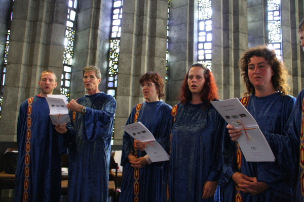 Die Hochzeit im Sommer in der Kirche auf der Liebfrauenhöhe fand bei wunderbarem Wetter statt. Wir sangen in und vor der Kirche.