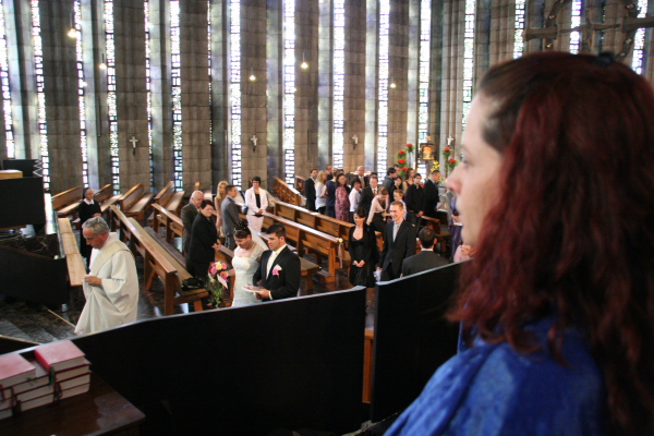 Die Hochzeit im Sommer in der Kirche auf der Liebfrauenhöhe fand bei wunderbarem Wetter statt. Wir sangen in und vor der Kirche.