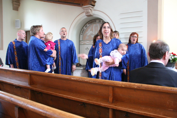 In Sonnenbühl scheint in mancher Kirchenbank die Zeit stehen geblieben zu sein... Leider hatte Jana keine Zeit, also musste Sebastian nochmal ran an die Tasten. Einen alten Bekannten aus Horb trafen wir hier: Hansjörg Eberhardt hatte Urlaubsvertretung und führte daher durchs Programm.