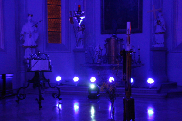 Unterstützt wurde das Jubiläumskonzert des Gospeltrain durch das Team von DTS Soundcheck, das die Stimmung der Stücke durch tolle Lichteffekte unterstrich und den Klang so abmischte, dass der Hall der Kirche aufgefangen wurde.
