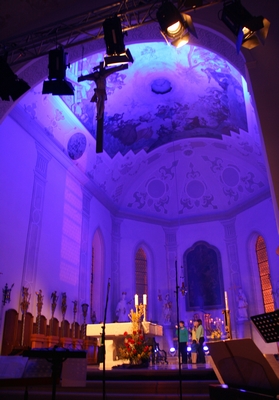 Unterstützt wurde das Jubiläumskonzert des Gospeltrain durch das Team von DTS Soundcheck, das die Stimmung der Stücke durch tolle Lichteffekte unterstrich und den Klang so abmischte, dass der Hall der Kirche aufgefangen wurde.