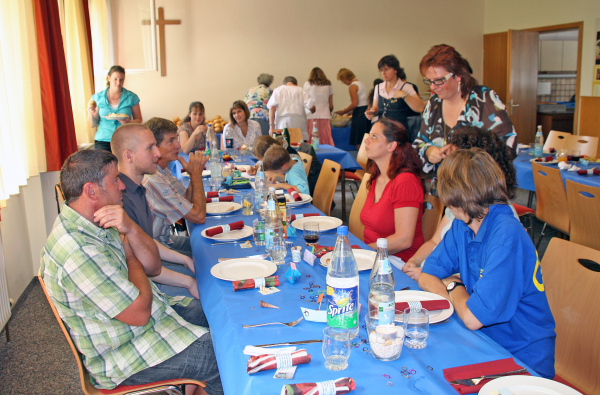Wieder konnten wir Jana als Pianistin gewinnen und so einige Lieder aus dem Jubiläumskonzertprogramm in die Taufe aufnehmen. Nach der Taufe wurde im Gemeindehaus gefestet.