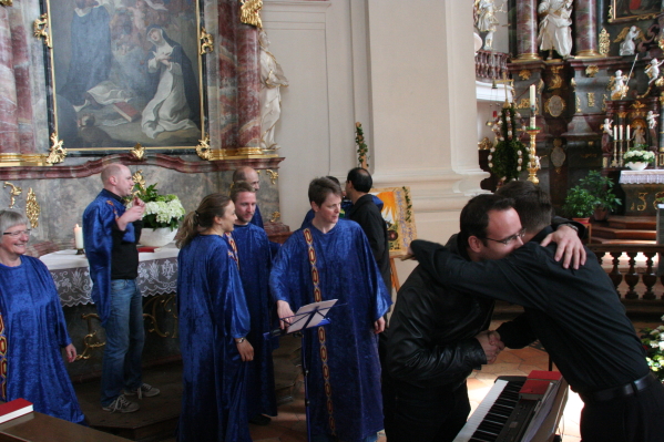 Wir kamen um den ersten Mai herum mit dem ganzen Chor und brachten noch unsere Gastmusiker Michael Spors und Claudius Heinzelmann mit. Zusammen traten wir bei drei Konzerten und vier Gottesdiensten auf und hatten eine wunderbare Zeit im Kloster.