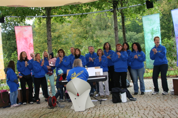 Im Anschluss unterhielten wir noch die Besucher der Gartenschau am Waldachkopf mit einigen Gospels - bis der Polizeihuschrauber kam.