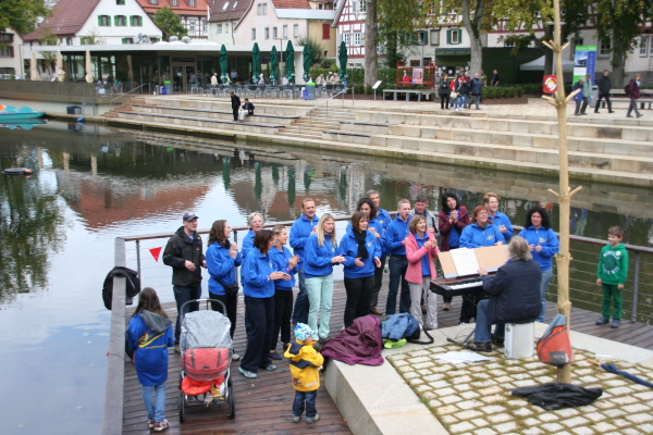 Im Anschluss unterhielten wir noch die Besucher der Gartenschau am Waldachkopf mit einigen Gospels - bis der Polizeihuschrauber kam.