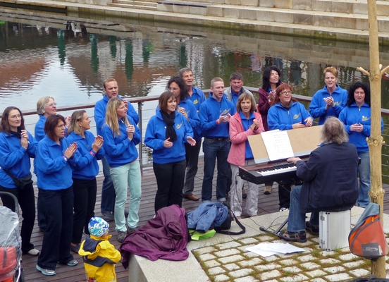 Im Anschluss unterhielten wir noch die Besucher der Gartenschau am Waldachkopf mit einigen Gospels - bis der Polizeihuschrauber kam.