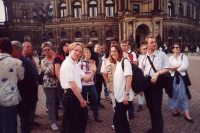 "Hier kann nicht jeder machen, was er will!"nach Dresden. Die eine Hälfte wohnte im Jugendhaus, der Jugendherberge von Dresden, während die andere Hälfte in der Kirchengemeinde, in der wir auch einen Gottesdienst bereicherten, unterkam. In der Juhe wohnten die älteren und etwas gesetzteren und solche, die sich schon so schrecklich erwachsen fühlten, im Gemeindesaal richteten sich die jungen und junggebliebenen gemütlich mit ihren Isomatten ein.