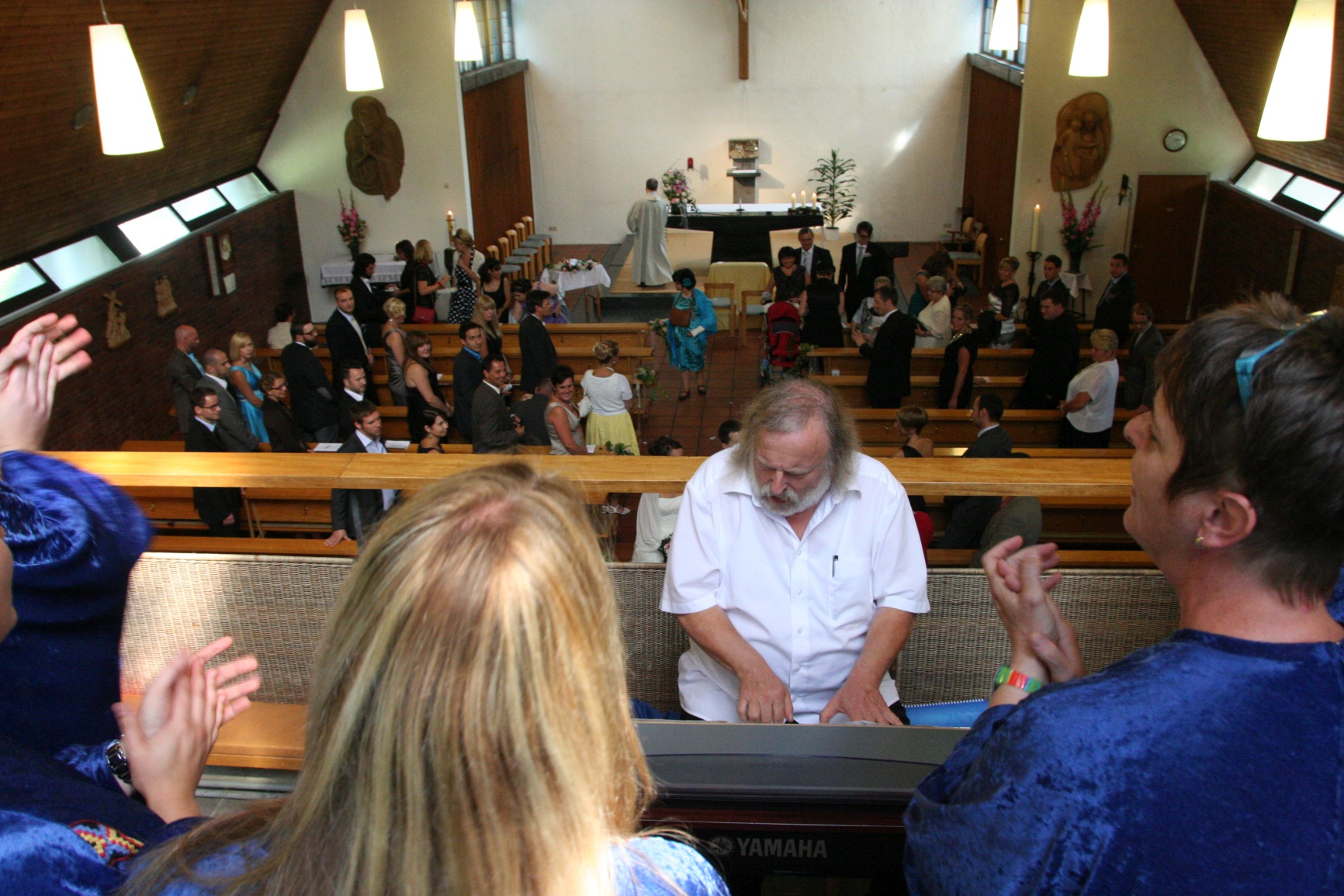 Zunächst eine Ensembleprobe, danach mit dem ganzen Chor im Gottesdienst gesungen.