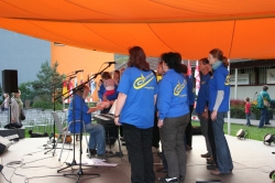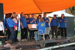 Zum Herbstfest in Horb sangen wir zunächst auf der Hauptbühne auf dem Flößerwasen. Nach einer kurzen Umzugsphase ging es dann auf der Bühne im alten Freibad weiter.