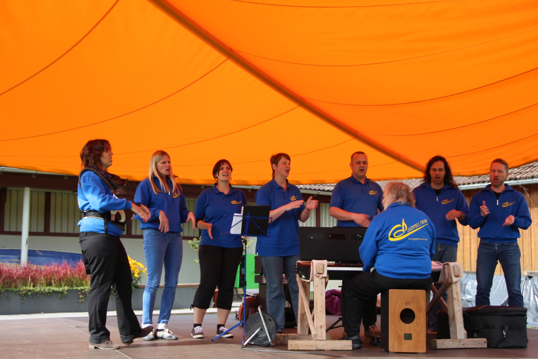 Nach dem Chor im vergangen Herbst waren Vocal Trails im Freibad zu Gast. Unsere Tonanlage hatte den Winter nicht überlebt, immerhin tat der Keyboardlautsprecher...
