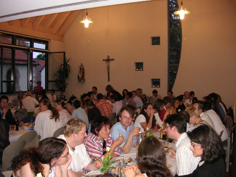 Ein Teil der Gäste hält sich schon vor dem Saal auf...