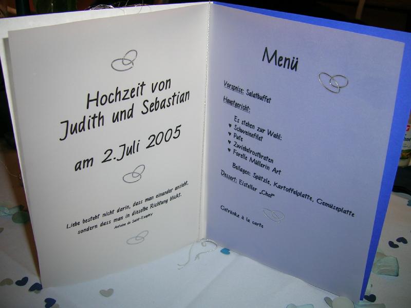 Unsere Menükarte. Das Essen war perfekt - zumindest für
