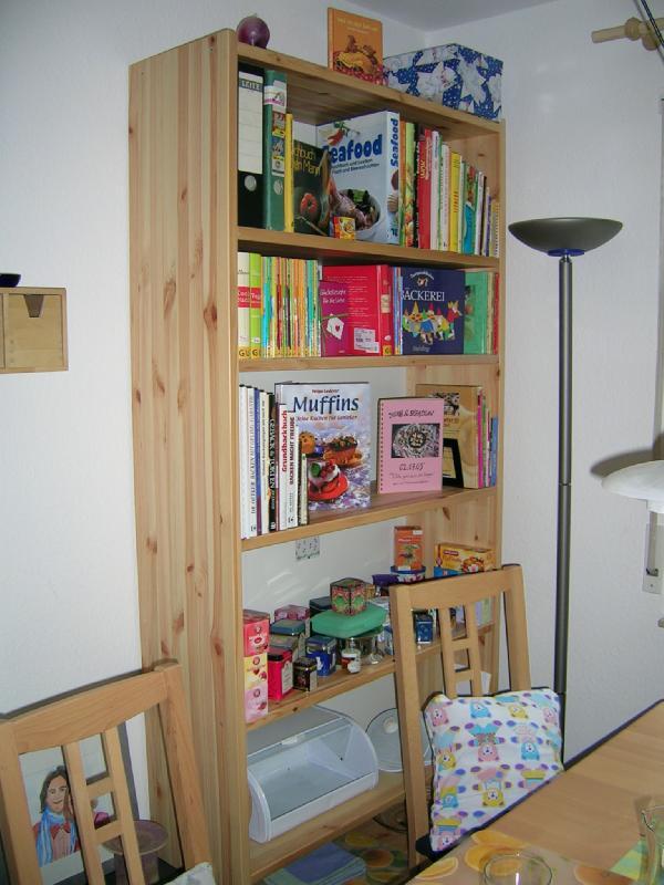 Das ist das Rezeptregal im Esszimmerbereich.