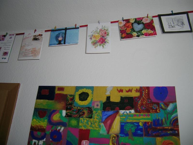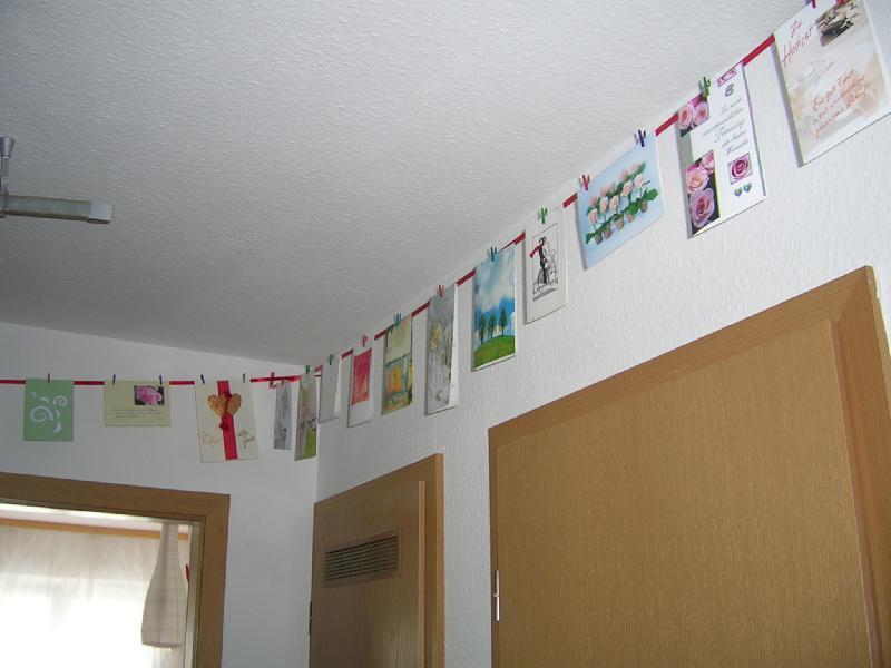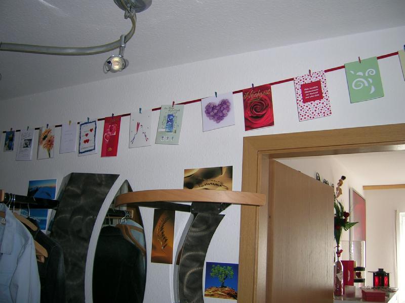 Der Flur mit den Bildern von der Hochzeit und allen Glückwunschkarten,