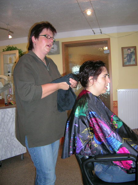 Die erste Station war der Frisörtermin bei Ute für uns beide.