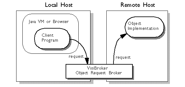 Ein Vermittlungsdienst (Object Request Broker = ORB) gewährleistet