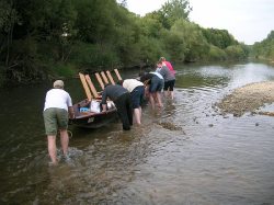Wir ließen es offenbar ruhiger angehen, versenkten nur mutig die Asche unseres Kugelgrills im Wasser und schleppten uns kontrolliert über Sandbänke. Ansonsten genossen wir das kühle Bier, die vorzügliche Salate, die Grillspezialitäten und die Ausfahrt mit unserem Organisator und Außenbordmotor Harald.