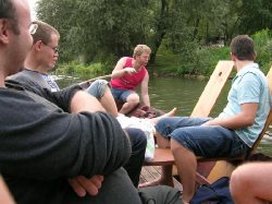 Mitte Ende September war es nach etwas Terminschieberei endlich soweit. Immerhin zehn Mutige hatten Zeit, sich auf das große Wagnis Stocherkahnfahren einzulassen. Man munkelt, dass der eine oder andere sich mit fadenscheinigen Argumenten (muss noch eine Wand im Haus hochziehen) entschuldigte als bekannt wurde, dass Tags zuvor ein anderer Mitarbeiterausflug in der Versenkung des Stocherkahns seinen Höhepunkt fand...