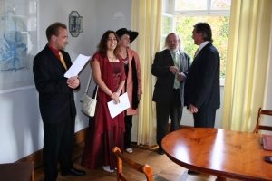 Die Zeremonie im Standesamt umrahmten wir im Eintopf mit zwei Liedern. Am Abend gab es unter Olis und Judiths Moderation ein kleines Ausscheidungstanspielmitbesen, bei dem es viele Preise zu gewinnen gab.