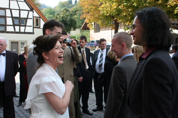 Die Zeremonie im Standesamt umrahmten wir im Eintopf mit zwei Liedern. Am Abend gab es unter Olis und Judiths Moderation ein kleines Ausscheidungstanspielmitbesen, bei dem es viele Preise zu gewinnen gab.
