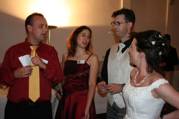 Die Zeremonie im Standesamt umrahmten wir im Eintopf mit zwei Liedern. Am Abend gab es unter Olis und Judiths Moderation ein kleines Ausscheidungstanspielmitbesen, bei dem es viele Preise zu gewinnen gab.