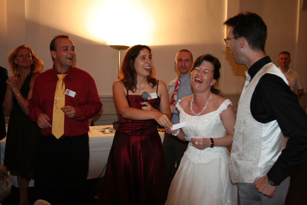 Die Zeremonie im Standesamt umrahmten wir im Eintopf mit zwei Liedern. Am Abend gab es unter Olis und Judiths Moderation ein kleines Ausscheidungstanspielmitbesen, bei dem es viele Preise zu gewinnen gab.