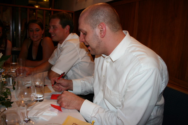 Die eigentliche Feier fand auf der Burg Hohenzollern statt und war nebenbei ein ein kleines Klassenreffen. Einer der Höhepunkte des Abends war das spielerisch abgerungene Versprechen eines Frühstücks bei Zanders an ihrem zehnten Hochzeitstag.