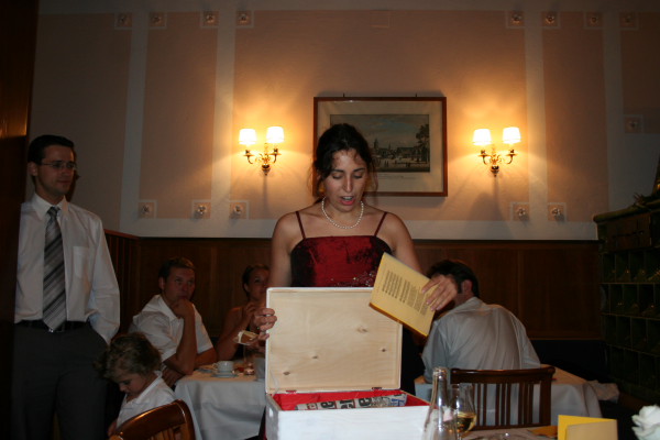 Die eigentliche Feier fand auf der Burg Hohenzollern statt und war nebenbei ein ein kleines Klassenreffen. Einer der Höhepunkte des Abends war das spielerisch abgerungene Versprechen eines Frühstücks bei Zanders an ihrem zehnten Hochzeitstag.